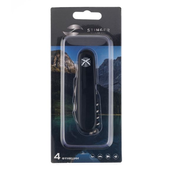 Нож перочинный Stinger 90 мм, 4 функции, черный, в блистере