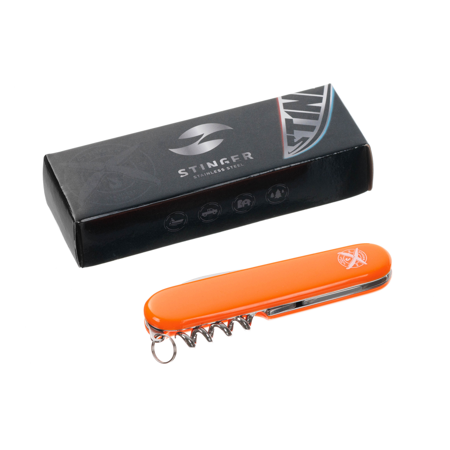 Нож перочинный Stinger 90 мм, 4 функции, оранжевый