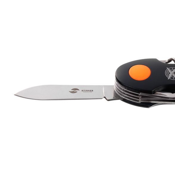 Нож перочинный Stinger 95 мм, 15 функций, черный/оранжевый, в блистере