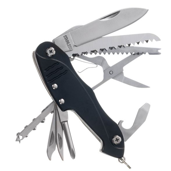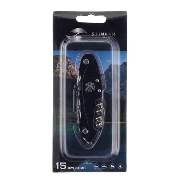 Нож перочинный Stinger 96 мм, 15 функций, черный, в блистере