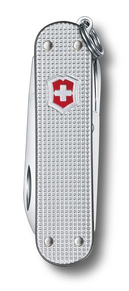 Нож-брелок ALOX Victorinox - это многофункциональный инструмент с набором из 5 функций: Лезвие Пилочка для ногтей с: -Отверткой Ножницы Кольцо для ключей Длина: 58 мм Цвет: Серебристый В комплекте: черный чехол из кожзаменителя