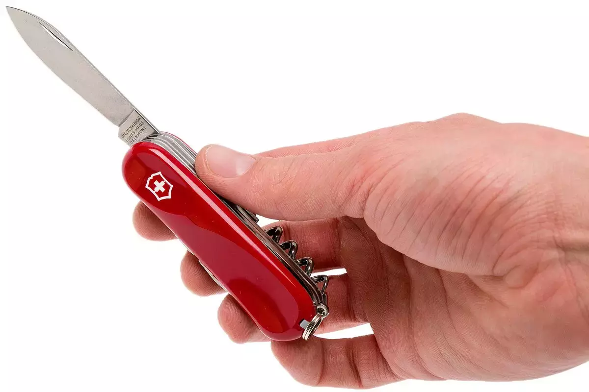 Клинок выполнен в классическом швейцарском стиле - универсальная форма без излишеств. Он хорошо контролируется, уверенно режет и подходит для большинства бытовых задач. Сталь долго остаётся рабочей и не требует сложного ухода.