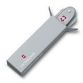 Рукоятка имеет тактильную рельефность и сделана из анодированного алюминия. Материал легкий, прочный и не подвержен коррозии в процессе эксплуатации. Швейцарская компания выпускает также модели с черными ручками.