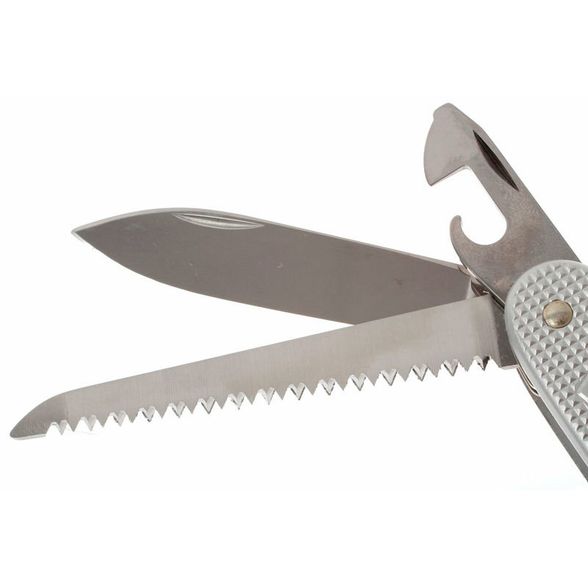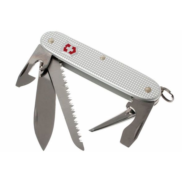 Представляем в наличии нож перочинный Victorinox Farmer. Это универсальный инструмент, с помощью которого можно выполнять много разных действий. Им вскрывают бутылку с напитком, нарезают бутерброды, отпиливают тонкие деревянные ветки и делают много чего другого. Изготовлен в алюминиевом корпусе с рельефными накладками, что предотвратит выскальзывание при эксплуатации. Использованная сталь не ржавеет и не царапается.