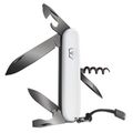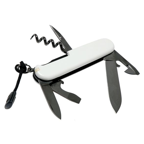| Список функций | зубочистка; пинцет; стропорез; лезвие, большое; лезвие, малое; открывашка; Отвертка 3 мм; открывашка; зачистки проводов; Отвертка 6 мм; расширитель, развертка и швейное шило; штопор; брелок для ключей. |