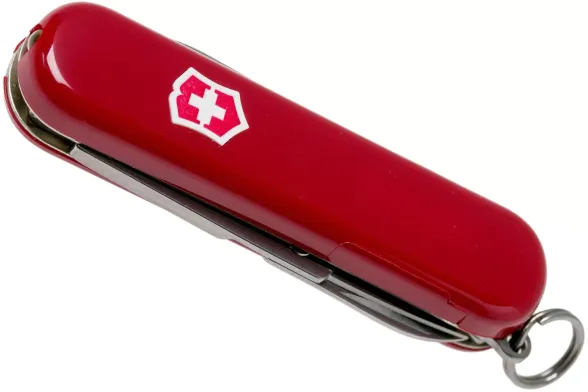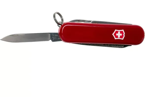 Корпус ножа выполнен из прочного и лёгкого пластика, окрашенного в фирменный красный цвет Victorinox. Эргономичная форма рукояти обеспечивает удобный хват, а поверхность устойчива к появлению царапин и следов использования. Даже при ежедневном применении нож сохраняет презентабельный вид, а традиционный логотип Victorinox на корпусе подчеркивает швейцарское происхождение и высокий стандарт качества.