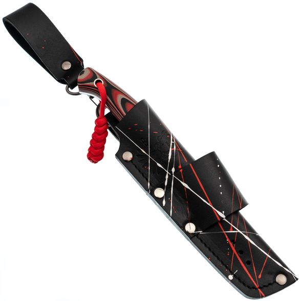 Рукоять выполнена из G10, что делает её лёгкой, прочной и устойчивой к внешним воздействиям. Длина рукояти позволяет удобно менять хват, а объёмные накладки обеспечивают плотное и надёжное заполнение руки. Конструкция на накладном монтаже повышает общую прочность.