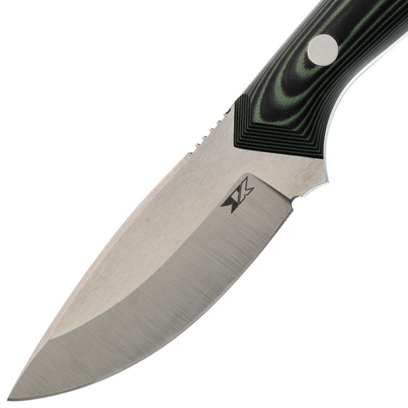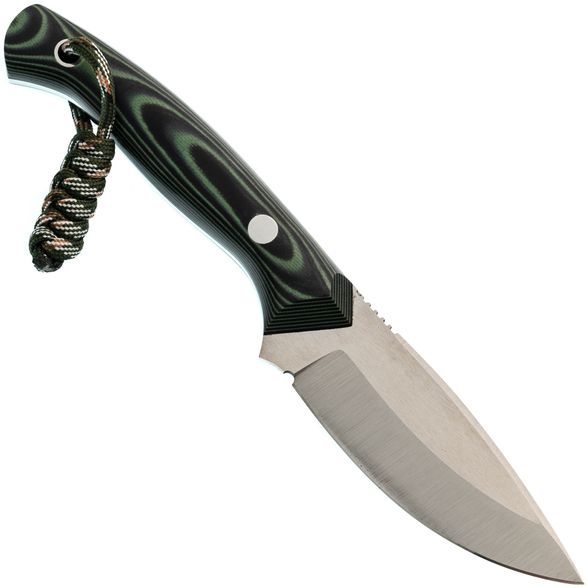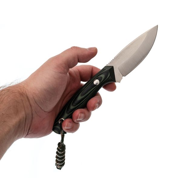 Клинок выполнен из нержавеющей стали N690, которая предлагает оптимальный баланс прочности, коррозионной стойкости и удержания остроты. Это универсальный выбор для самых разных условий эксплуатации. Геометрия клинка в форме Drop-Point позволяет ножу легко справляться с большинством задач, будь то резка или прокалывание. Прямые спуски выше середины клинка обеспечивают прочность, а голомень упрощает заточку ножа так как с ней нож проще зажимать в заточной системе.