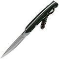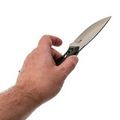 Рукоять сделана из G10, материала, который выделяется лёгкостью, высокой прочностью и устойчивостью к воздействию влаги и температур. Удлинённая форма рукояти подходит для разных типов хвата, а её большой объём даёт ощущение надёжности. Накладной монтаж обеспечивает дополнительную прочность конструкции.