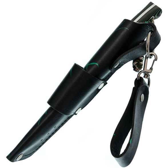 Кожаные ножны практичны и долговечны, если их правильно ухаживать. Они оснащены свободным подвесом с карабином для быстрого отсоединения и горизонтальным креплением, что добавляет удобства в ношении.