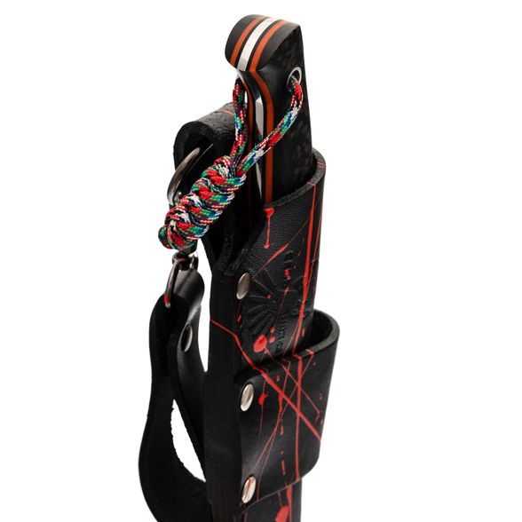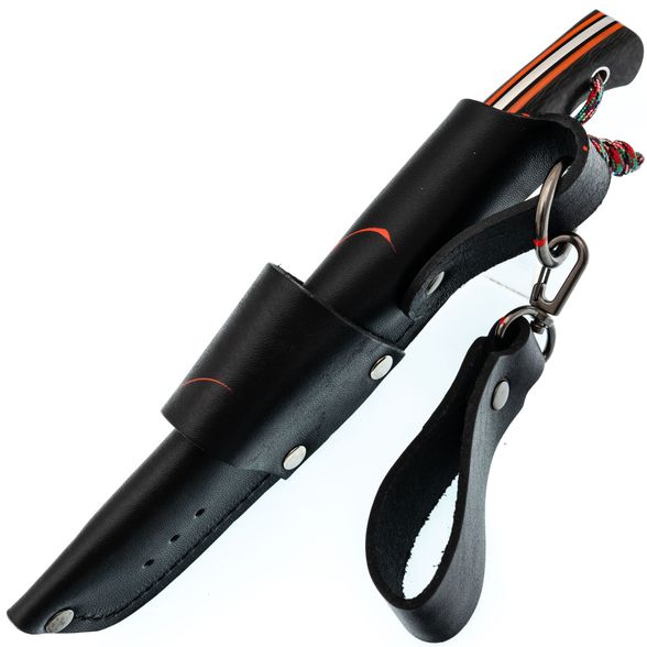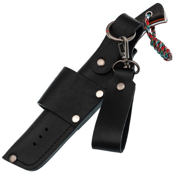 Ножны из натуральной кожи обладают долговечностью и удобством в использовании. Свободный подвес с карабином и горизонтальное крепление дают пользователю гибкость в выборе способа ношения.