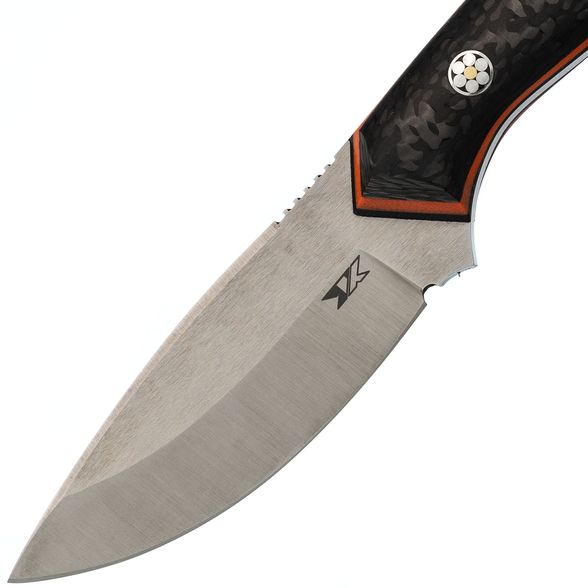 Для изготовления клинка используется японская сталь VG-10, которая известна своим балансом прочности, устойчивостью к образованию коррозии и долгим удержанием остроты. Этот материал делает нож более чем подходящим для использования в условиях повышенной влажности или при интенсивной работе. Геометрия клинка в форме Drop-Point и прямые спуски обеспечивают универсальность и лёгкость в заточке.