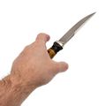 - Клинок из порошковой стали M390. Это современная классика для хороших ножей. Она не ржавеет, если вы случайно оставите нож мокрым, и держит заточку невероятно долго. Сталь эта твёрдая, но мастера смогли вывести её на хороший угол, так что править её на керамическом мусате или ремне с пастой одно удовольствие. Тупеть этот нож будет очень нескоро.