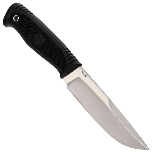 Клинок "Пласт-1Т" изготовлен из легендарной инструментальной стали D2, которая известна своим долгим удержанием заточки и агрессивной режущей способностью. Форма клинка - универсальный Drop-Point, позволяющий справляться с любыми задачами, от нарезки продуктов до более серьезных работ в походе. Спуски на 2/3 клинка обеспечивают ножу высокий запас прочности, что важно при активном использовании.