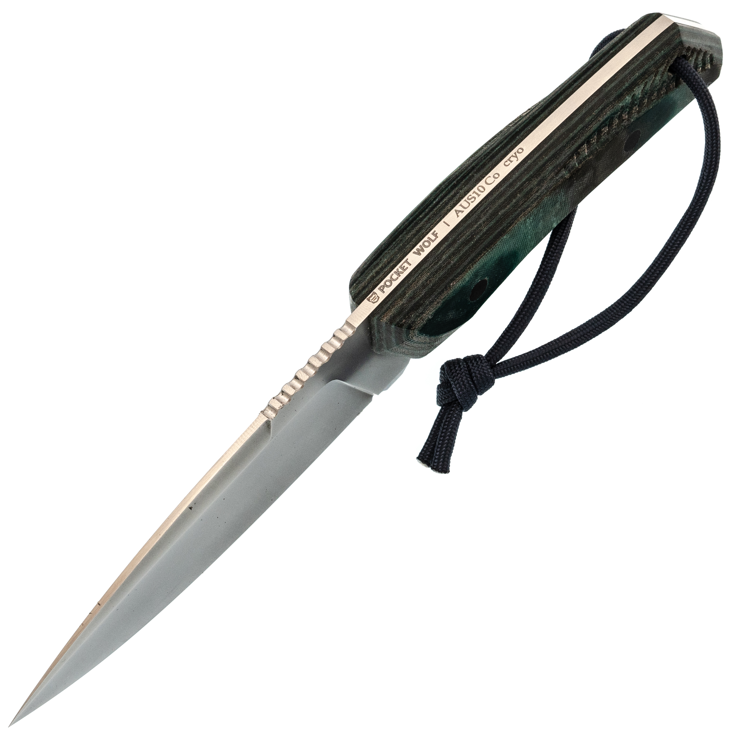 Нож Pocket Wolf Большой Тактик, сталь AUS10Co, рукоять микарта, черно-зеленый