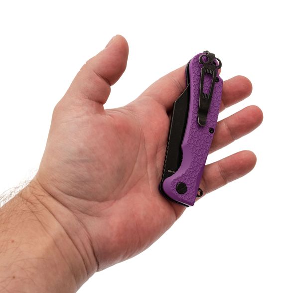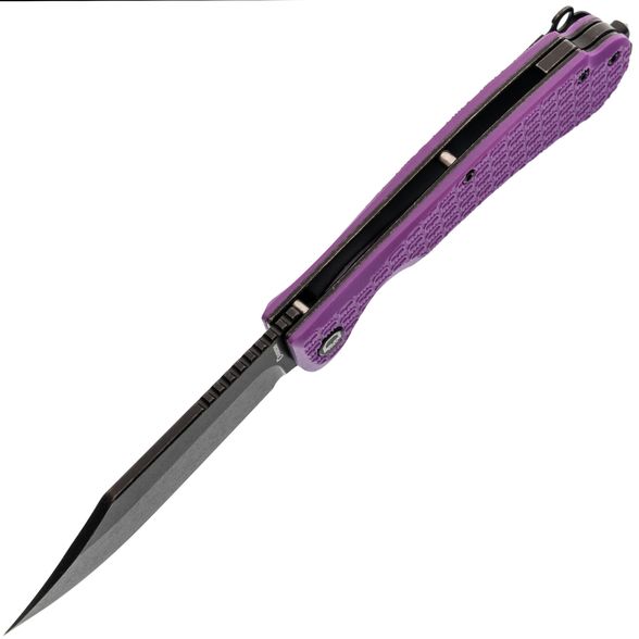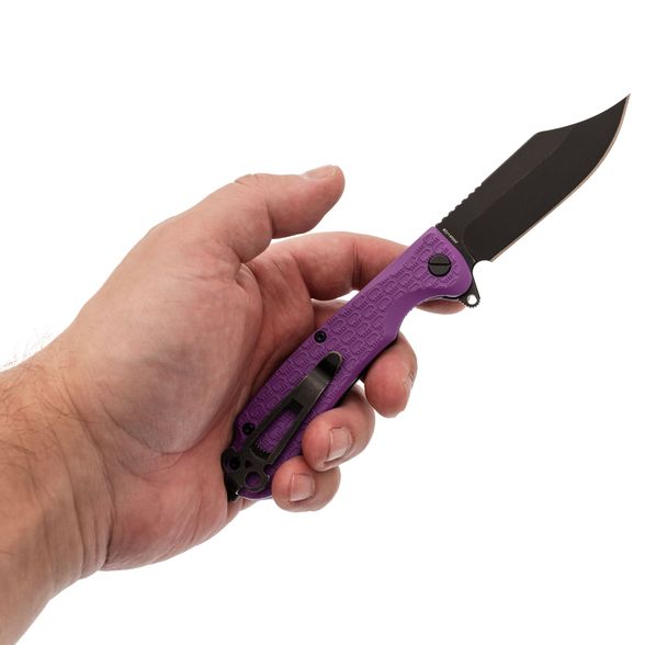 Daggerr Powie - это складной нож с уникальным профилем клинка Bowie, который редко встречается в современных моделях. Его фиолетовые накладки придают ему яркий и запоминающийся внешний вид. Но это не просто красивый аксессуар, это настоящий рабочий инструмент.