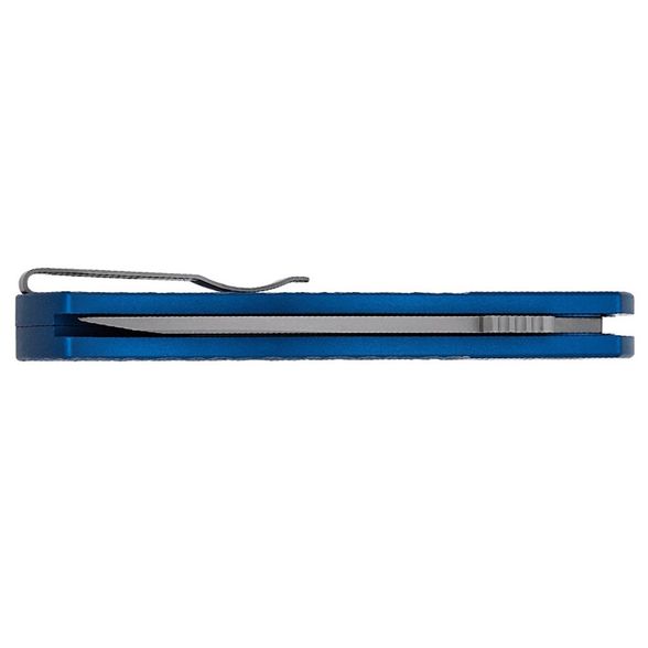 Рукоять выполнена из легкого, но невероятно прочного алюминия, который гарантирует долговечность и надежность конструкции. Ее аккуратно скругленная форма минимизирует дискомфорт при использовании, а утонченная фрезеровка не только придает эстетическую изюминку, но и существенно улучшает цепкость. Надежный замок Button-Lock фиксирует клинок, который благодаря автоматическому механизму выстреливает с поразительной скоростью и мощью, оставаясь при этом приятным в обращении. Для удобства ношения нож оснащен клипсой глубокой посадки, а рукоять выполнена в эффектном синем цвете, что придает изделию современный и стильный вид.