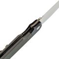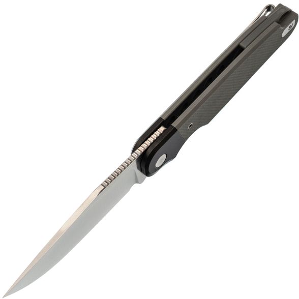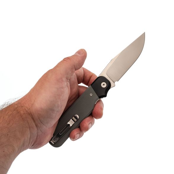 Клинок выполнен из стали VG-10 – сбалансированного материала, который долго сохраняет остроту и хорошо сопротивляется коррозии. Такая сталь пригодится, например, при нарезке продуктов или выполнении мелких работ на улице. Прямые высокие спуски и профиль Clip-Point обеспечивают ножу хорошие режущие характеристики, что можно оценить при резке различных материалов. Для открытия используются плавник флиппера и фронт флиппер, дающие выбор способа открытия.