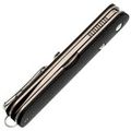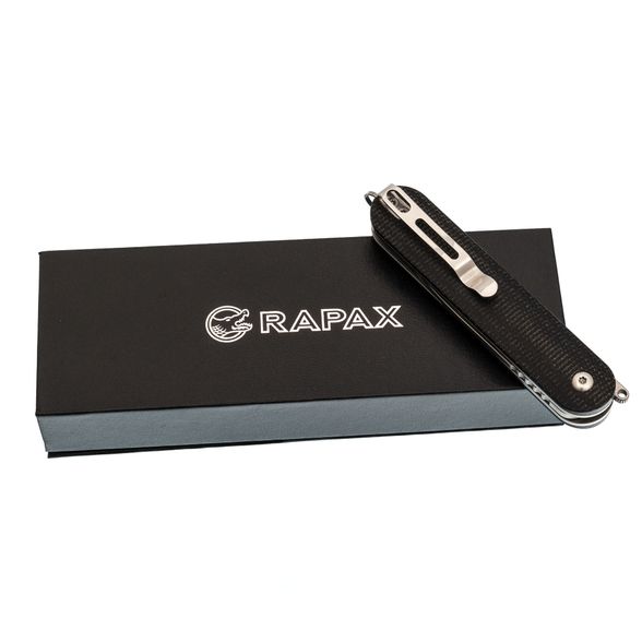 RAPAX Kiki — это компактный складной нож, который идеально сочетает стиль и функциональность. Его изящный силуэт достигается за счет того, что клинок полностью прячется в рукоять, остаётся только аккуратный флиппер и скоба для крепления темляка. Такой минималистичный дизайн делает нож не только практичным, но и визуально привлекательным, он не привлекает лишнего внимания в кармане или сумке. Нож удобно носить с собой, а благодаря продуманной конструкции, он остается безопасным в сложенном состоянии.
