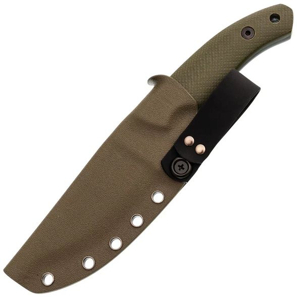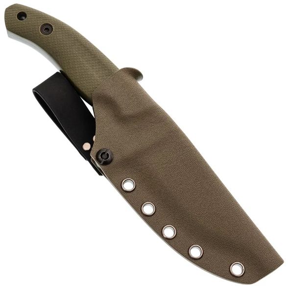 Ножны из Kydex - термопластик с высокой прочностью и формоустойчивостью, устойчив к воздействию влаги, грязи и температур. Оснащены силиконовым ремешком для комфортного горизонтального подвеса на ремне.