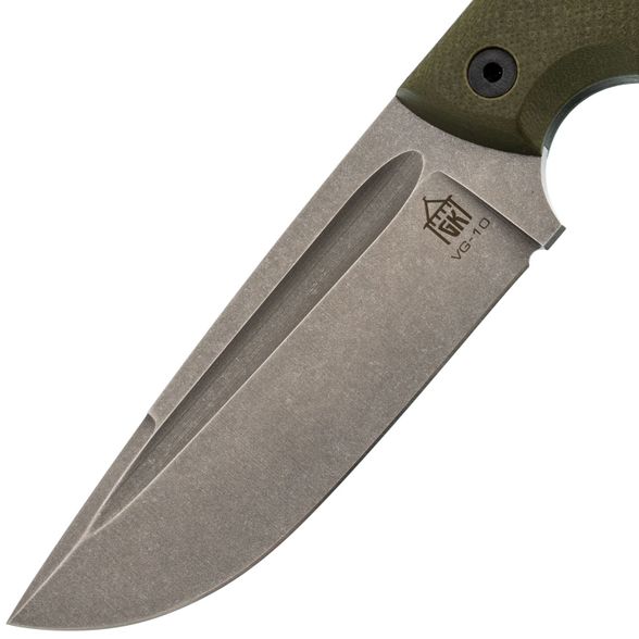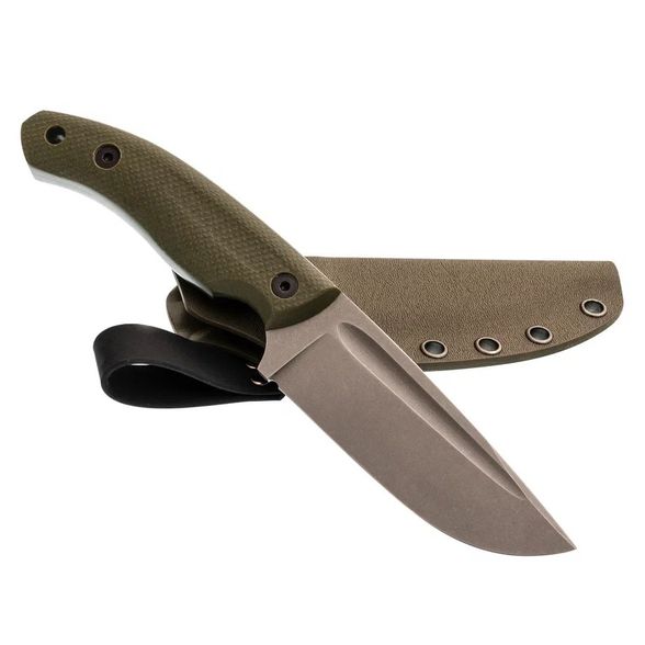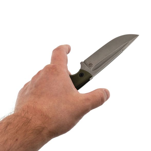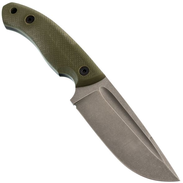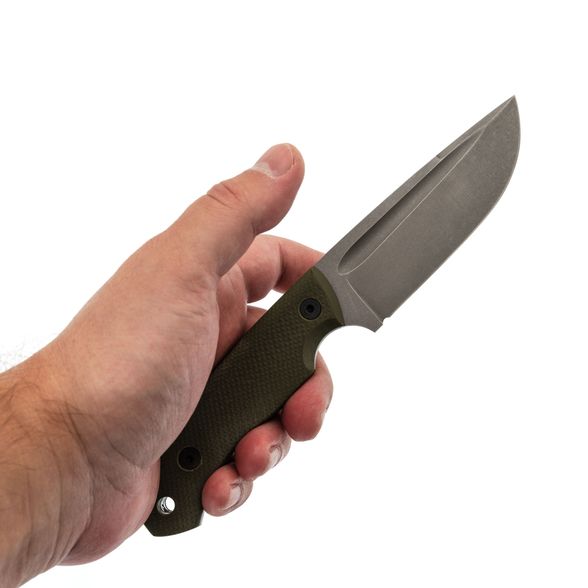 Клинок выполнен в форме Drop-Point с увеличенной шириной и высокими прямыми спусками, что обеспечивает отличные режущие и строгательные свойства. Финишная обработка Stonewash придаёт поверхности оригинальный внешний вид и скрывает мелкие царапины, которые могут появиться при активном использовании. Благодаря ручной заточке, лезвие отличается исключительной остротой и тонким сведением, позволяя точно выполнять широкий спектр задач - от нарезки продуктов до подготовки древесины для костра.