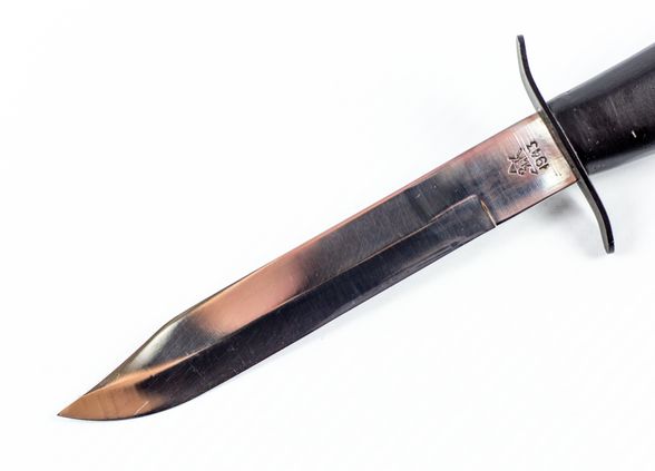 Это настоящее холодное оружие антиквариат с длиной клинка 145 мм. Профиль лезвия Clip Point обеспечивает легкое проникновение в ткани противника и гарантированное поражение жизненно важных органов. Вес составляет всего 101 г.
