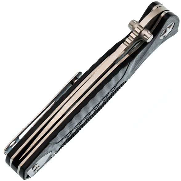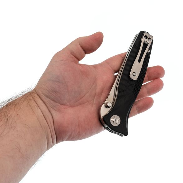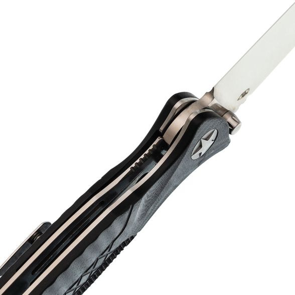 Рукоять выполнена из стеклотекстолита G10, который отличается высокой прочностью, устойчивостью к влаге и лёгкостью. Этот материал не подвержен деформации и сохраняет свои свойства даже в сложных условиях. Благодаря продуманной эргономичной форме, нож надёжно лежит в руке, обеспечивая комфортное и безопасное использование. Надёжный механизм Liner-Lock предотвращает случайное складывание клинка при нагрузках, а клипса глубокой посадки позволяет удобно носить нож, не привлекая лишнего внимания.