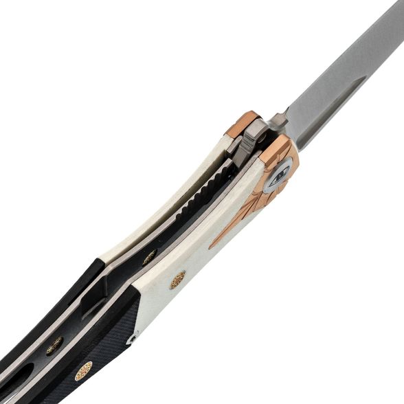 Рукоять ножа изготовлена из стеклотекстолита G10, который отличается высокой прочностью и водоотталкивающими свойствами. Эргономичная форма рукояти удобно ложится в руку, даже если вы используете нож долго. Замок Liner-Lock обеспечивает надёжность и безопасность, а встроенная клипса позволяет носить нож на поясе или в кармане, не беспокоясь о его удобном доступе.