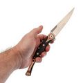 Премиальное исполнение популярной модели Reptilian Идальго сочетает в себе традиционные мотивы и современные технологии. Этот крупный складной нож, выполненный в стиле классических навахи с элементами техно-дизайна, выпускается ограниченным тиражом – всего 65 экземпляров. Название «Идальго» (означающее «благородный») подчеркивает статус и исключительность изделия, а его доступная цена делает его одним из лучших предложений на рынке.