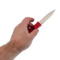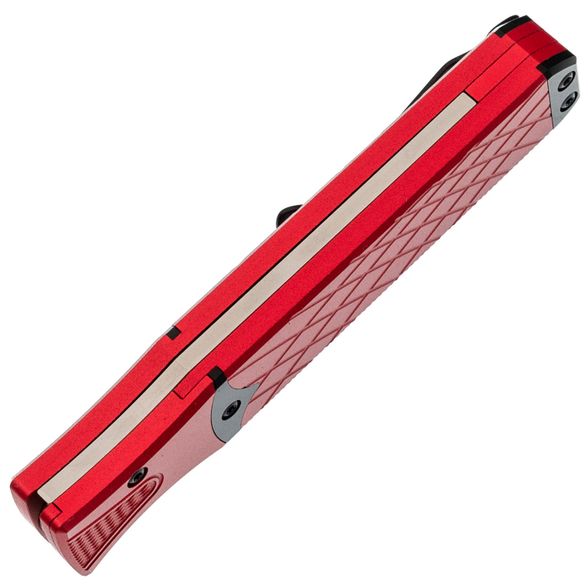 Рукоять изготовлена из алюминия, отличающегося прочностью, малым весом и устойчивостью к внешним воздействиям, что делает его оптимальным материалом для ножевых рукоятей. В конструкции использован замок Bolster-Lock, который открывается сдвигом больстера в сторону, противоположную направлению клинка, обеспечивая быстрое автоматическое извлечение и надёжную фиксацию. Для удобного ношения предусмотрена карманная клипса.