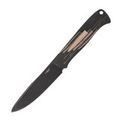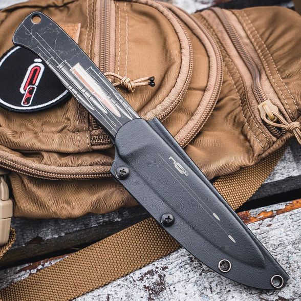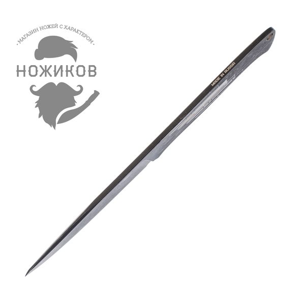 Нож Рикошет (Ricochet) с фиксированной конструкцией отлично подойдет туристам, охотникам и любителям экстремального времяпровождения. Клинок длиной 110 мм изготовлен из нержавеющей стали AUS-8 и имеет копьевидную форму Spear-Point с небольшим фальшлезвием. Материал хорошо выдерживает ударные нагрузки и довольно легко точится. Особую прочность достигается благодаря цельнометаллической конструкции. Особенностью данной модели является цветная гравировка в виде пуль с 3D-эффектом на рукояти. Цельнометаллический туристический нож Рикошет укомплектован ножнами из кайдекса со съемным прорезиненным подвесом, который можно прикреплять на любую сторону ножен.
