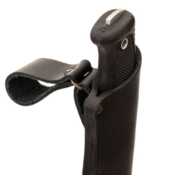 Ножны погружного типа, в которые упакован нож, изготовлены из толстой кожи что позволяет им прослужить много лет. Они оснащены как свободным, так и жестким подвесом, что обеспечивает удобство и универсальность при ношении.