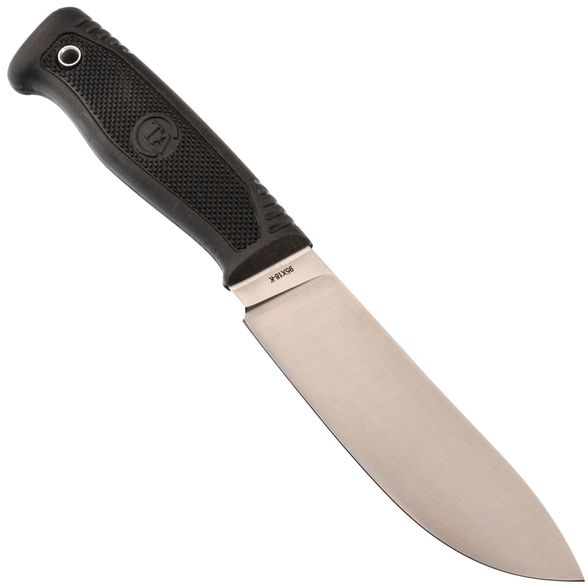 Клинок ножа изготовлен из стали 95х18, одной из самых популярных ножевых сталей в России. Эта сталь обладает высокой ударной вязкостью, коррозионной стойкостью и легкостью заточки, что делает ее идеальным выбором для обслуживания в походных условиях. Форма клинка Skinner идеально подходит для разделки туш во время охоты, а широкое брюшко позволяет эффективно резать продукты. Прямые спуски от обуха в сочетании с широкой формой клинка обеспечивают идеальное качество реза.