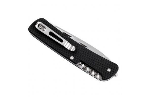 Нож (длинное лезвие, плоскогубцы, кусачки для проволоки, плоскогубцы для лески, ножницы, инструмент для закручивания проволоки, открывалка для бутылок, большая отвертка 6,5 мм, инструмент для оголения провода, пила по дереву, скальпель, шило, инструмент для работы с проводом, ключ для велосипедных спиц, отверстие для продевания нити, отвертка Philips, стропорез, малая отвертка 3 мм, карманная клипса, штопор, стеклобой, кольцо для ключей/ темляка, пинцет)
