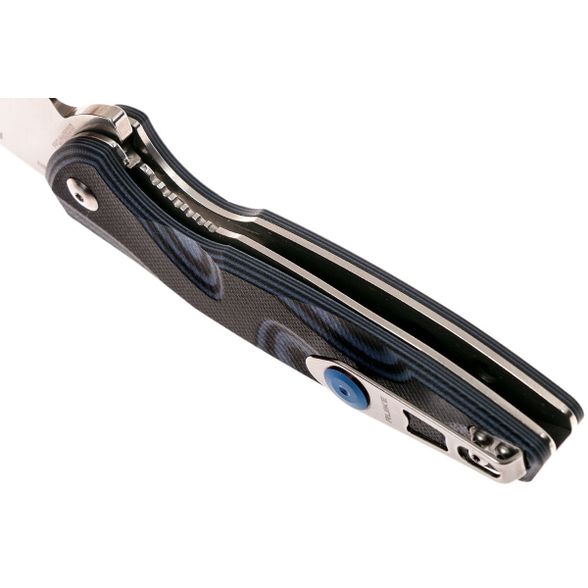 Рукоять изготавливается из композита G10, в составе которого непрерывная стекловолоконная нить и эпоксидная смола. Этот материал очень прочный, не восприимчив к влаге и не тускнеет со временем. Ручка текстурированная и выполнена в эргономичной форме, а потому держать нож действительно удобно. Кроме того, на рукоятке есть клипса, которая позволяет закрепить нож на ремень, карман или другую амуницию. Присутствует также отверстие для темляка.
