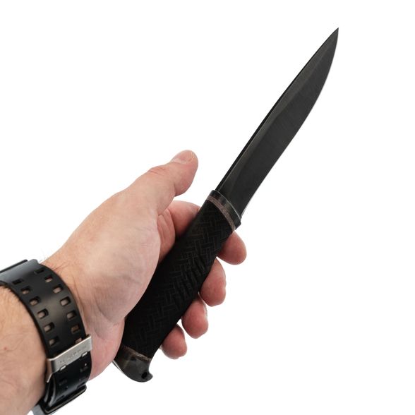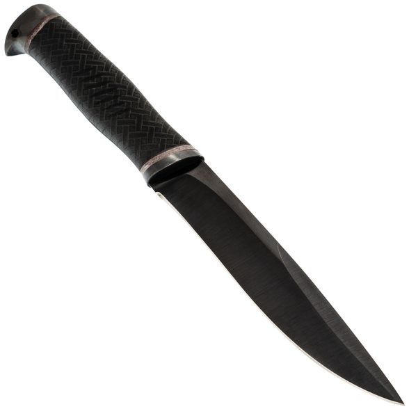 Клинок ножа Русак-2 изготовлен из рессорной стали 65Г, главным преимуществом которой является высокая ударная вязкость и устойчивость к боковым нагрузкам. Эта сталь легко точится, обеспечивая постоянную остроту лезвия. Несмотря на то, что сталь имеет склонность к ржавчине, клинок покрыт воронением для дополнительной защиты. Форма клинка Drop-Point считается самой универсальной, делая нож пригодным для широкого спектра задач. Длинное фальшлезвие улучшает проникающую способность, что делает нож еще более эффективным.