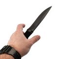 Рукоять ножа изготовлена из резины - легкого и прочного материала с цепкой текстурой. Она не боится воды и удобно ложится в руку, обеспечивая уверенный и безопасный хват. Форма рукояти обеспечивает комфортное использование даже при длительном применении.