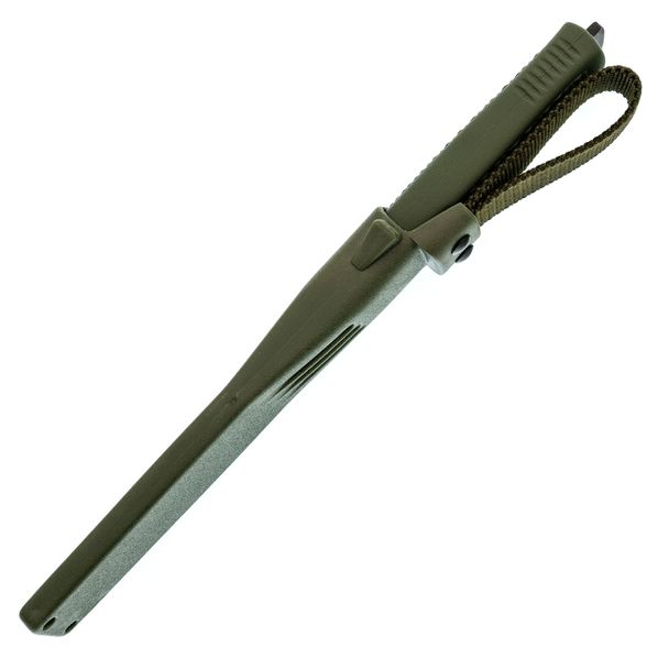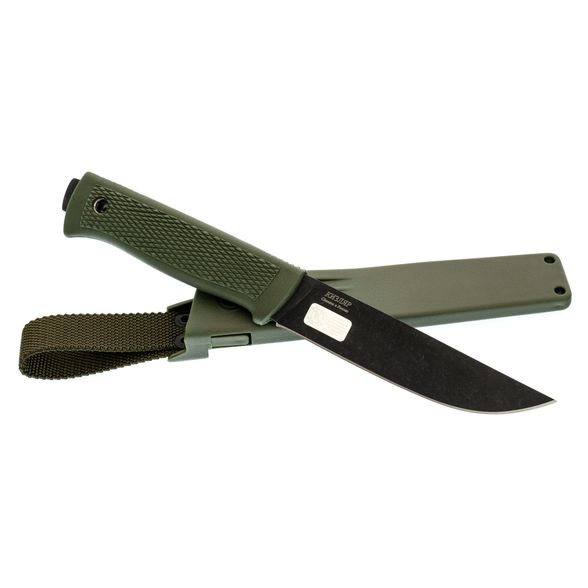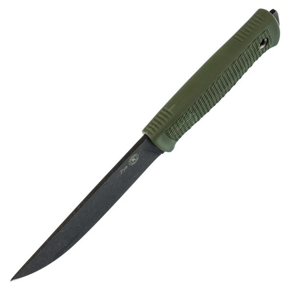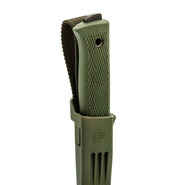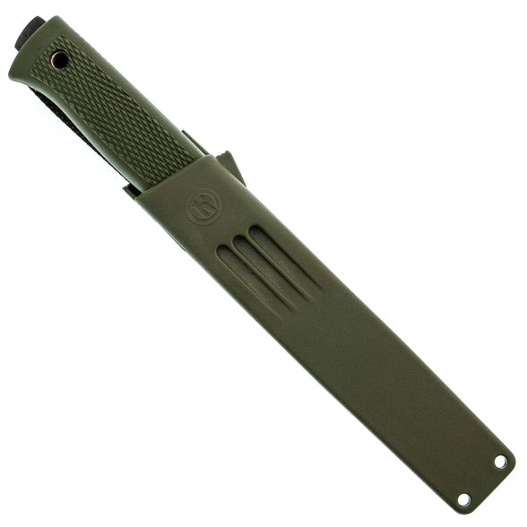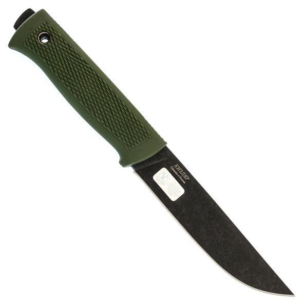 Рукоять ножа выполнена из резины - материала, который идеально подходит для туристических ножей. Резина не боится воды, поглощает часть ударных вибраций и обеспечивает надежный хват даже в самых экстремальных условиях. Насечка на рукоятке придает дополнительную цепкость, так что вы можете быть уверены в контроле над ножом.