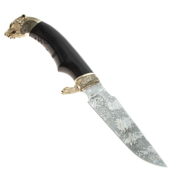 Нож Ирбис-2 с лапой гардой и головой волка, Х12МФ