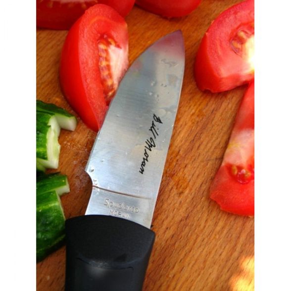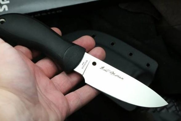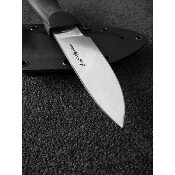 Нож с фиксированным клинком Bill Moran™ Spyderco FB02P, сталь VG-10 Satin Plain, рукоять термопластик FRN/кратон, чёрный создан в нестареющих традициях Билла Морана. Билл Моран признан дедушкой американского производства ножей на заказ и отцом-основателем Американского общества клинковых мастеров. Он начал ковать сталь и делать ножи более пятидесяти лет назад. Если вам посчастливится найти нож Морана, сделанный на заказ, вам придется выложить за него не менее пяти тысяч долларов. Его работы и дизайн настолько почитаемы. Компания Spyderco имеет честь предложить серийный нож с фиксированным лезвием, созданный по его дизайну. Нож доступен в двух различных формах клинка. FB01 имеет клинок в стиле Bowe, а FB02 - в форме drop-point. Оба клинка изготовлены из VG-10 с плоской заточкой и имеют подпись Билла. Они имеют коническую форму, начиная с толстого места соединения клинка с рукоятью, истончаясь по позвоночнику до тонкого, равномерно заточенного кончика. В руке нож передает уникальное ощущение баланса, которое некоторые называют "четким пятном". Это ощущение возникает благодаря тому, что клинок и рукоять имеют сопоставимый вес. Этот баланс переходит в ощущение уверенного контроля над режущей кромкой. Рукоять из FRN трехмерно заполняет ладонь и инкрустирована панелью из нескользящего кратона. Оба ножа рекомендуются для охоты и кемпинга и поставляются в литых ножнах Boltaron с многопозиционной системой крепления G-Clip.