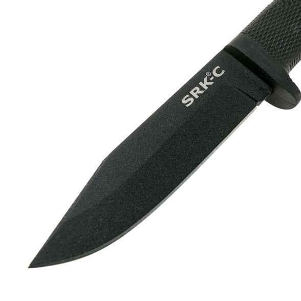 Cold Steel SRK Compact - нож с фиксированным клинком, предназначенный для экстремальных условий. Производитель - Тайвань, известен высоким качеством изделий. Модель Compact удобна для ношения и хранения благодаря компактным размерам. Лезвие из прочного материала обеспечивает резкость и долговечность. Нож комплектуется прочными ножнами. Благодаря Kraton на рукояти, нож удобен в использовании даже в сложных условиях.
