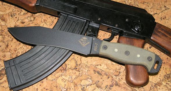 Нож NS-7, сталь 5160, рукоять микарта, фосфорные доты, чехол черный нейлон с внутренним пластиком.