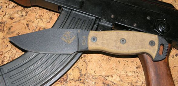 Нож RD4, сталь 5160, клинок черный, рукоять с отверстием (микарта).