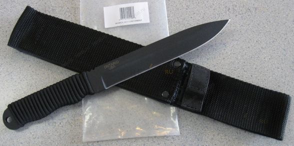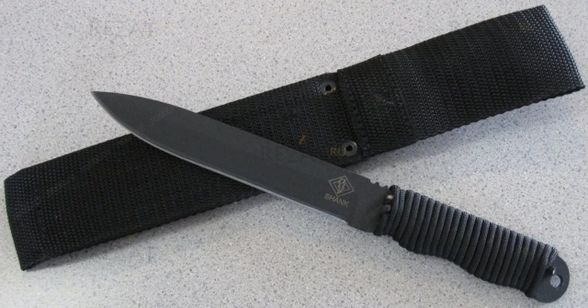 Нож с фиксированным клинком "BlackCordWrap", сталь 1095 черная, зубцы со стороны обуха, отверстие для шнурка, чехол черный нейлон.