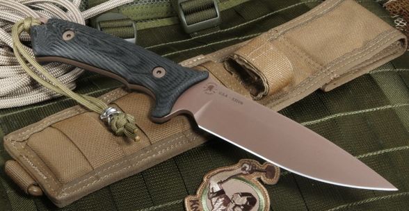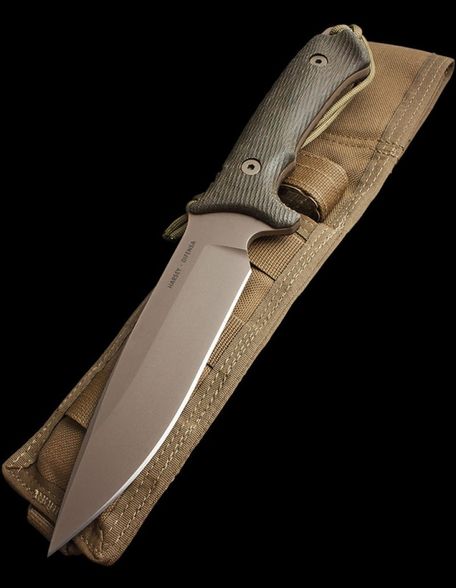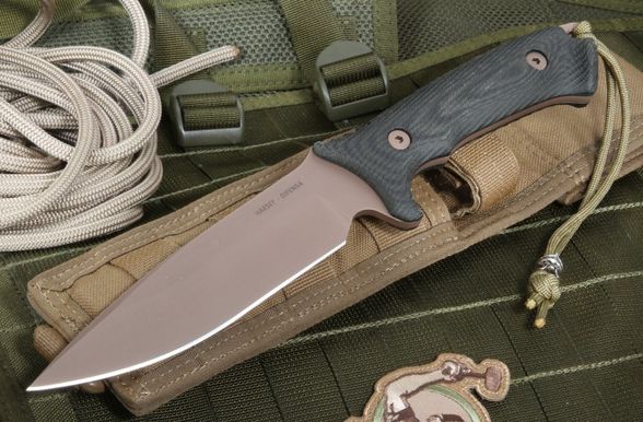 Нож с фиксированным клинком Spartan Blades Harsey Difensa, сталь CPM-S35VN Flat Dark Earth, рукоять черная микарта, чехол песочный