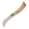 Одной из самых популярных моделей, предназначенных для садовых работ, является нож Opinel №8. Давайте рассмотрим, чем же он хорош и для чего пригоден. Начнем с того, что модель №8 имеет прочное лезвие из нержавеющей стали марки Sandvik 12С27 (при использовании именно этого материала, на клинке ставят отметку «Inox»). Как и все складные ножи Opinel, эта модель имеет замок Virobloc, конструкция которого была запатентована и используется исключительно в ножах данной компании. Этот замок довольно хорошо себя зарекомендовал, однако позже был немного доработан, что позволило складным ножам Опинель выйти на мировой рынок. Нынешние модели, с доработанной версией замка, могут надежно фиксироваться в двух положениях, что позволяет максимально комфортно не только работать, но и хранить данные ножи. Во время изготовления, все клинки проходят множество процедур, тестов и термическую обработку, которая обеспечивает твердость металла на уровне 57-58 HRC.