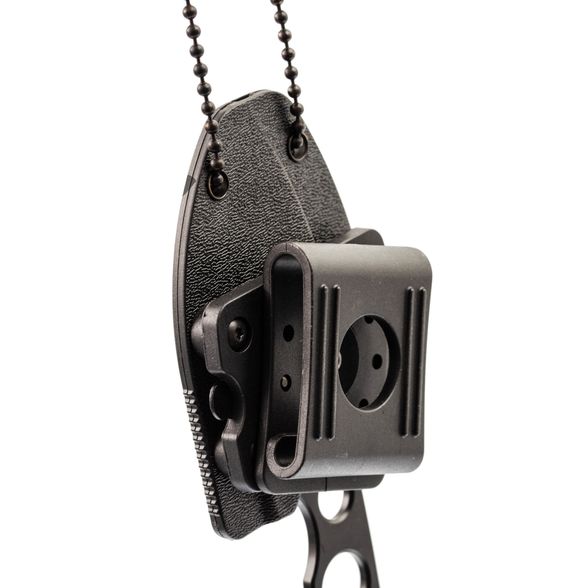 Ножны выполнены из пластика, что делает их прочными и неприхотливыми в эксплуатации. В комплекте идёт цепочка для ношения на шее и клипса для крепления на ремень, благодаря чему пользователь может выбрать наиболее удобный способ переноски или комбинировать их в зависимости от ситуации.
