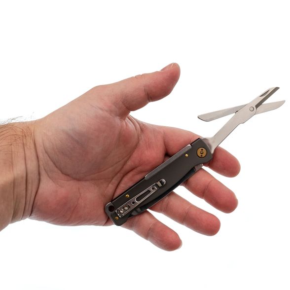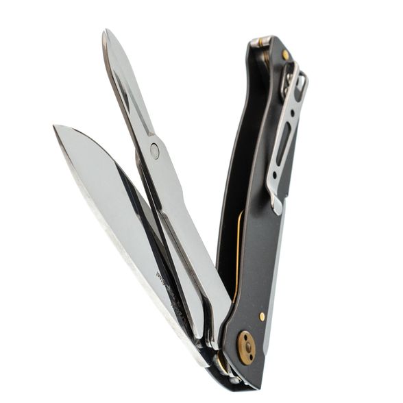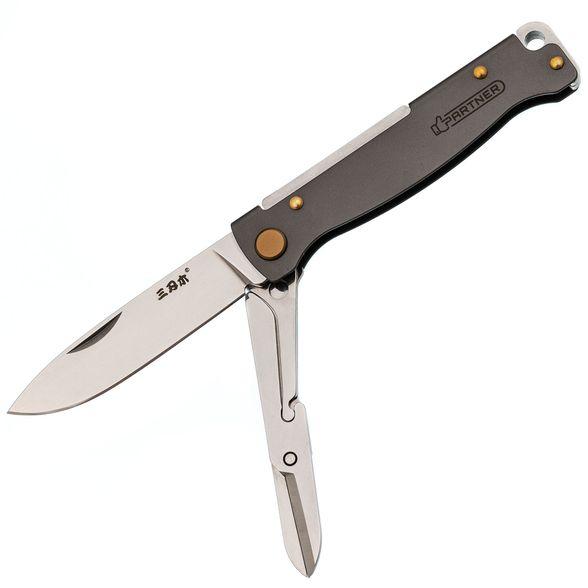 Складной нож Sanrenmu Partner с ножницами, сталь 12C27, рукоять нержавеющая сталь, серый