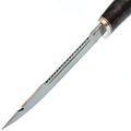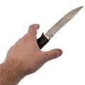 Клинок ножа изготовлен из стали M390, которая обеспечивает великолепное удержание остроты и стойкость к коррозии. Это делает нож долговечным и устойчивым к воздействию воды и других агрессивных внешних факторов. Особенность геометрии клинка — это пила на обухе, которая идеально подходит для очистки рыбы. Также в области кончика клинка есть выемка, предназначенная для удобного извлечения крючка из пасти рыбы, что делает нож не только эффективным, но и очень удобным в использовании на рыбалке.