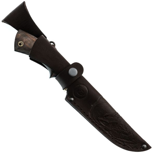 Ножны для "Щуки" выполнены из натуральной кожи, что делает их не только удобными для ношения, но и долговечными. Они оснащены хлястиком, который надежно фиксирует нож, предотвращая его выпадение. К тому же ножны оснащены жестким и свободным подвесом, что позволяет удобно носить нож на поясе и всегда иметь его под рукой во время рыбалки.
